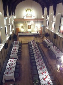 BUT there are bits of the whole sorry mess that even I enjoy. I do a number of Christmas parties including two corporate wife events which are a gas. Last night was at a Cambridge college which is, basically, supper at Hogwarts so what’s not to like?