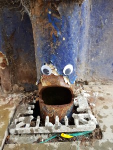 Anyway, where was I? Ah yes. Tuesday. The clock is ticking, it’s time to get ready for the rainy walk to school and after two cups of coffee it’s also motility time for Mummy. Yes. I know. A liiiitle too much personal information there but it is relevant to the story. When I rose from the lavatory, refreshed, happy and several kilogrammes lighter, I flushed and the water level in the bowl rose alarmingly and stopped. Then there was a glubbing sound, a bubble rose to the surface and slowly, it disappeared down to normal levels. I almost expected it to burp but it didn’t.