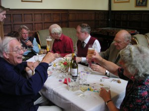 I don’t normally post pictures of my family but here is one of my uncle – on the right of the picture in the smart light brown suit, having a laugh with Dad (bottom left) in better days and Mum (fuzzy head in the RH corner) at Mum and Dad’s sapphire? 40 anyway, wedding anniversary party. The one below that is my uncle on his 82nd birthday, I think, back in 2011 anyway. Lovely shot sent by my cousin Matthew just afterwards.