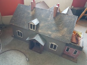 Speaking of which, the old dears were in good form this week and I saw my Uncle and Aunt too, which is always great fun. Lunch over and as I was leaving, Mum drew my attention to the dolls house our gardener, but more of a family member really, made for me as a kid. It is a replica of our house and had been languishing in the barn at Mum and Dad’s for years until my sis in law and niece had found it, got it out, cleaned it up, got rid of the woodworm and washed everything that could be saved and washed.