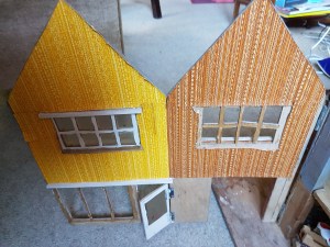It’s a wonderful, if knackered thing, though, this doll’s house. The windows are cut carefully with a fret saw and glassed with perspex cut to size from the windows of the sidecar from Arthur’s old motorbike. The lay out and rooms are a replica of our house, except for the downstairs loo but I think we can let that go.