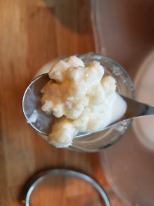 If you are suffering from the brain fog side of things, then, bizarrely, the balance of your gut flora and fauna can make a difference. Apparently 70% of your serotonin is produced in the gut. I am a great believer in trying anything once so when a friend said she had some Kefir grains going for a good home I went and collected some. Kefir can be grown in water or whole milk. It is a yeast which feeds on the water/milk and ferments it – the water has to have sugar and stuff in. Essentially, what this means is that you are drinking yeast shit. Try not to think about that. Like spreading manure on the fields, yeast shit in the guts does wonders and-
