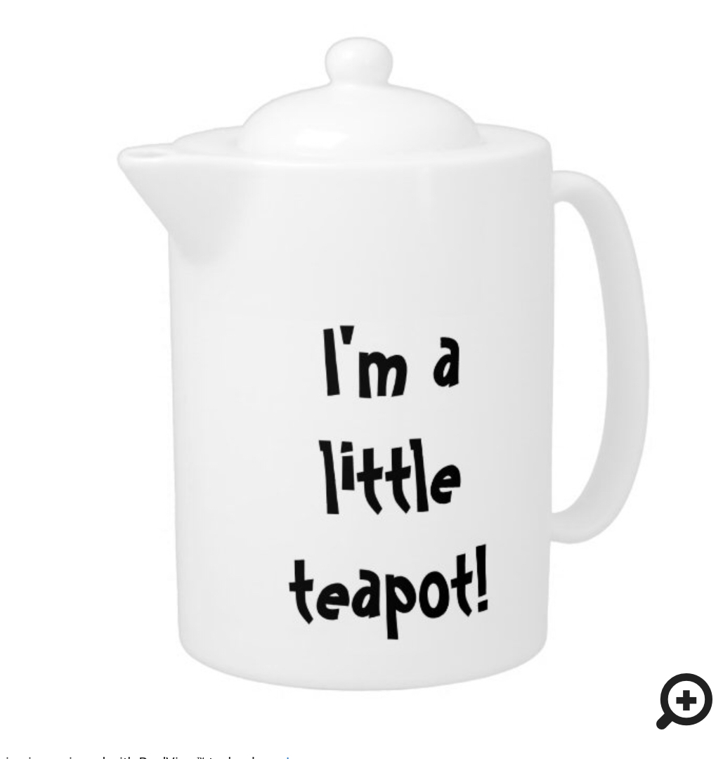 Naturally, because Zazzle puts the name of everything on the listing I’ve just called it I’m a little … and Zazzle has added, ‘teapot’ which, of course, I find completely hilarious because I’m incredibly mature.
