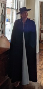 Then there’s the last weekend of September, which is NorCon. I have ordered a craptonne more books because it’s over two days. Yikes. I’m hoping that people will buy the small ones on the first day, read them and then come back to buy more! Well … I can dream. Also, THE CLOAK has arrived and it’s really rather splendid. Yep. I think we can say that it is good. I took a quick pic this afternoon but I need the full costume on to do it justice.