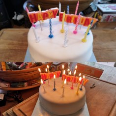 This is mostly because each the men in my life has an incredibly sweet tooth and prefers a bought one. McOther bought a white one for me to decorate but McMini even eschewed any attempts to add further decorations because he dislikes the lemon icing I make. Mwahahahrgh.
