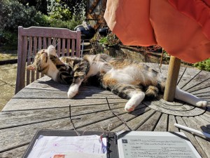 Finally, the RSPCA answered and told us – you guessed it – to call the vet. They gave us the number of our own vet, the one which was engaged in the first instance and extremely busy. I rang them and told them that I hoped to be bringing in a rabbit. However, while waiting, I had texted the RSPCA local rep to explain what was happening. I texted McOther as well. He came to collect us with the car, some carrots and lettuce, and a cat box. There was a lay by just near us so he parked there. By six fifteen, we reckoned we weren’t going to get the rabbit, it came close, a couple of times but we decided we’d have to leave it and we came home. Rabbits do get out and usually, they do go home on their own.